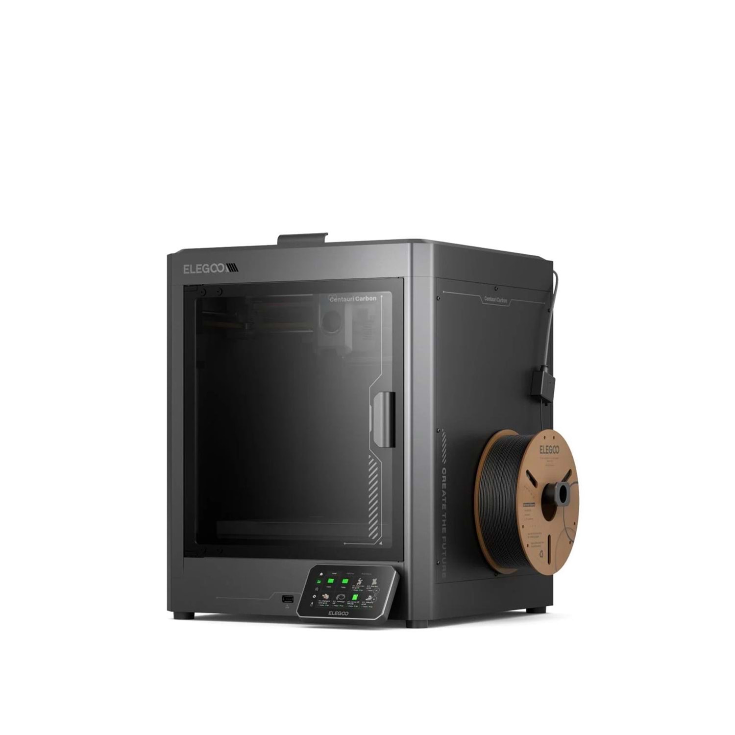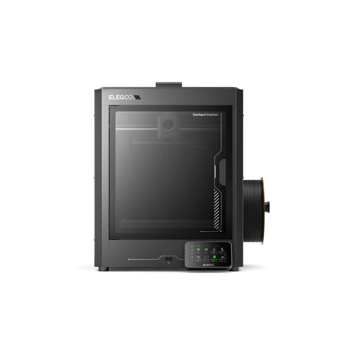256 × 256 × 256 mm baskı hacmiyle Centauri Carbon, her oturma odasını yaratıcı bir alana dönüştüren kullanıcı dostu, profesyonel düzeyde bir 3D baskı deneyimi sunar. Açık çerçeveli yatak hareketli yazıcılara kıyasla, yuvarlatılmış köşelere sahip ve tamamen kapalı yapısıyla çocuklu ve evcil hayvanlı evler için güvenli bir tasarım sunar. Montajsız kurulum, kutudan çıkar çıkmaz baskıya başlamaya olanak tanıyarak kullanım kolaylığı sağlar. Dahili bir filtre, baskı sırasında oluşan zararlı gazları ortadan kaldırarak daha sağlıklı bir ortam oluşturur. Sağ taraftaki filament tutucu erişilebilirliği artırırken, çift cam paneller devam eden baskıyı kolayca izlemenizi sağlar.