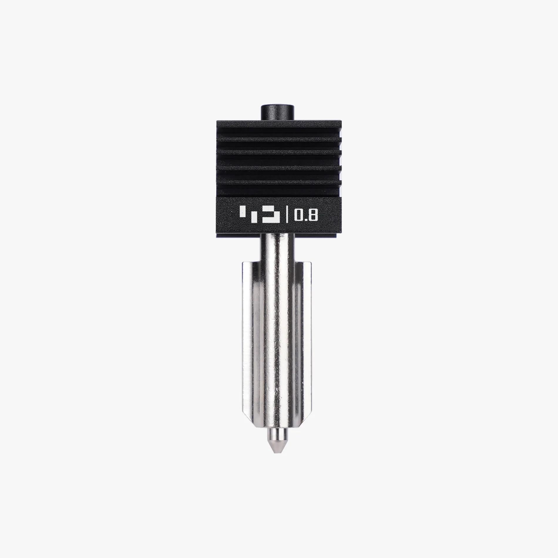 BambuLab Sertleştirilmiş Çelik Nozullu Hotend 0.8 mm, büyük hacimli baskılar ve yüksek hız gerektiren üretimler için geliştirilmiş güçlü bir hotend çözümüdür. 0.8 mm geniş nozul çapı sayesinde çok daha yüksek filament akışı sağlar ve baskı sürelerini önemli ölçüde kısaltır.